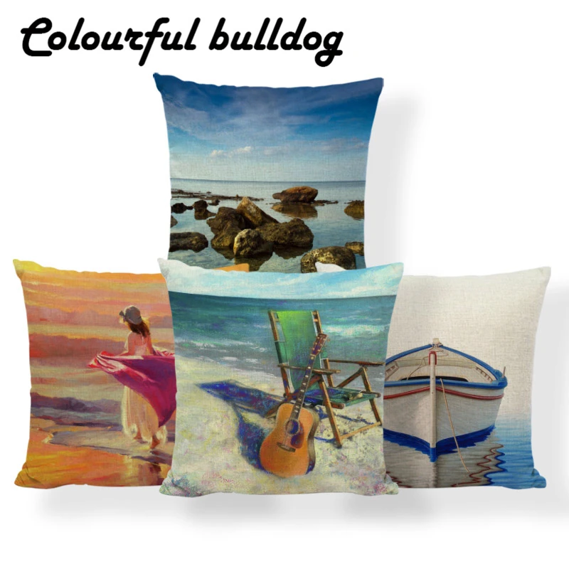 معرض ل الغيتار الشاطئ وسادة غطاء الحب المشهد وسادة وسائد الاستوائية خزانة الكلب عشاق الهدايا رمي غطاء وسادة شجرة 18X18 الكتان
