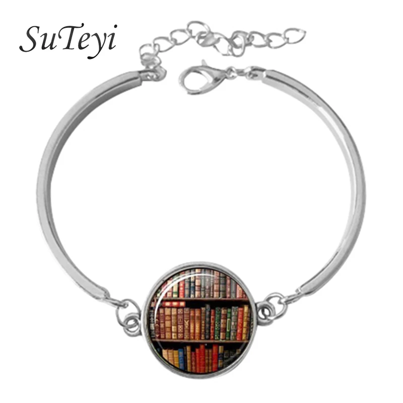 استعارات من SUTEYI كتاب سوار مكتبة مجوهرات خزانة Bibliophile مكتبة كتاب عاشق الجرذان الزجاج كابوشون قبة الفضة أساور