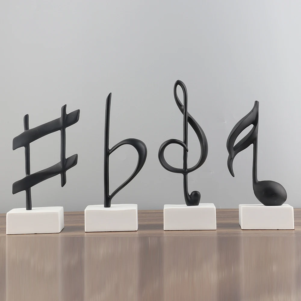 معرض ل 1 مجموعة (4 قطع) الأسود والأبيض الموسيقية ملاحظات الحلي خزانة مكتب ديكور المنزل الراتنج الحرف الموسيقى الحلي AP5171357