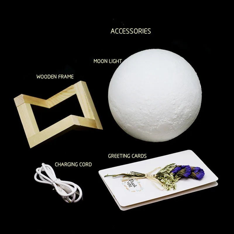البحث عن معلوماتمعلومات اضافية قابلة للشحن 3D طباعة مصباح قمري 12 cm 20 cm ضياء 3 اللون تغيير اللمس التبديل نوم خزانة ليلة ضوء ديكور المنزل الهدايا الإبداعية