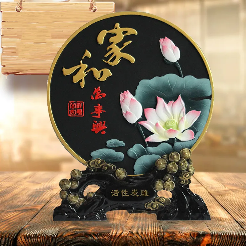 معرض من 26.8 سنتيمتر عالية الصينية الفحم نحت الحرف اليدوية زينة التذكارية القرص خزانة تلفزيون مجلس الوزراء الزينة في المنزل