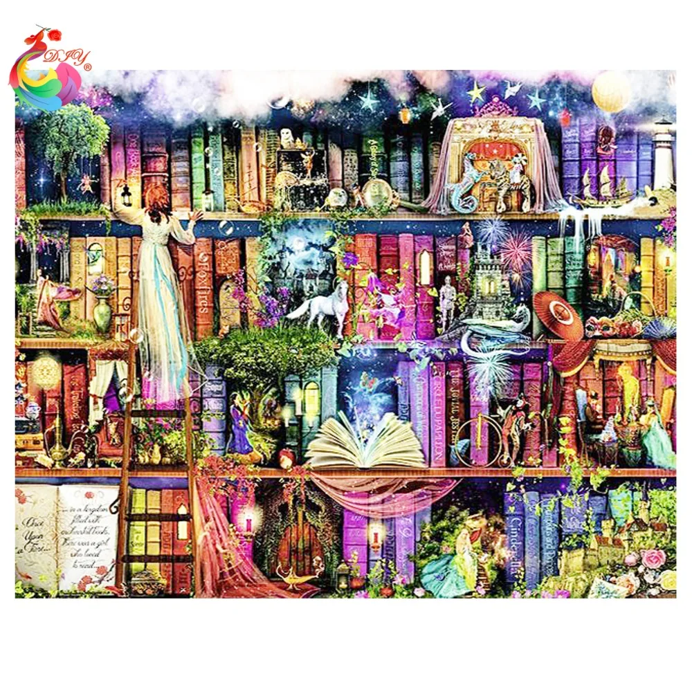 المنتجات ذات الصلة ل Bookcases و DIY 5D جولة الماس فسيفساء مكعب روبيك ألواح تلوين حرفية لامعة غرزة الماس التطريز المشهد جميل خزانة أطقم